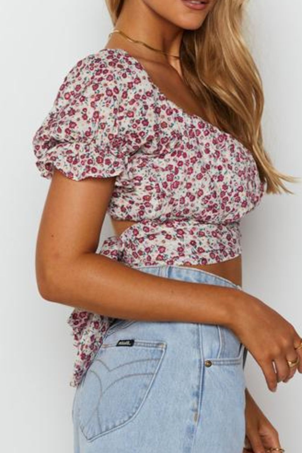 - Features: Ruffle, Tie