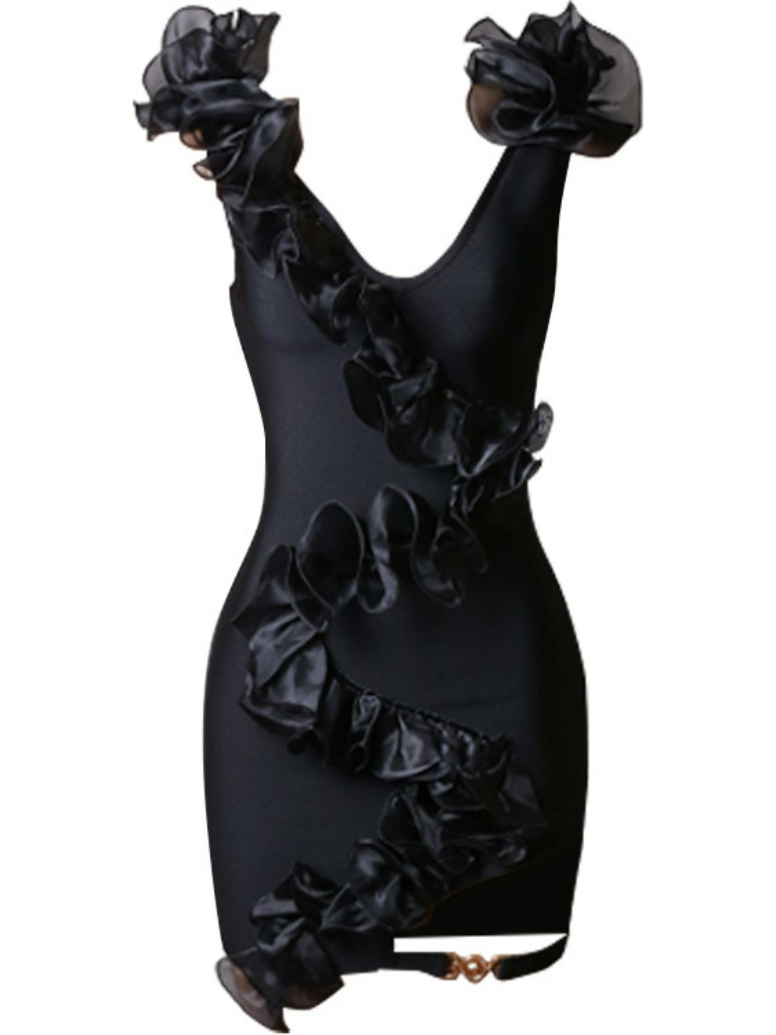 Mesh Ruffle Trim Cutout Sleeveless Bandage Dress